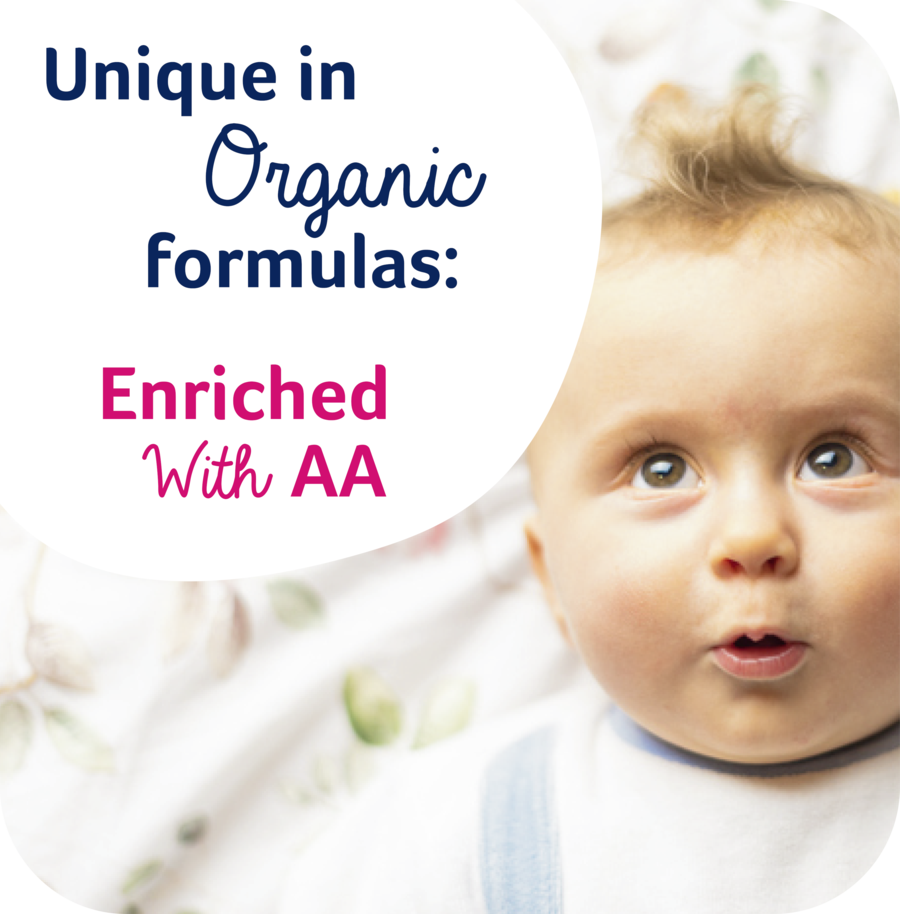 - Contains DHA and AA (Arachidonic acid). Both unsaturated fatty acids supports infant brain and eye development encouraging cognitive function and visual acuity.